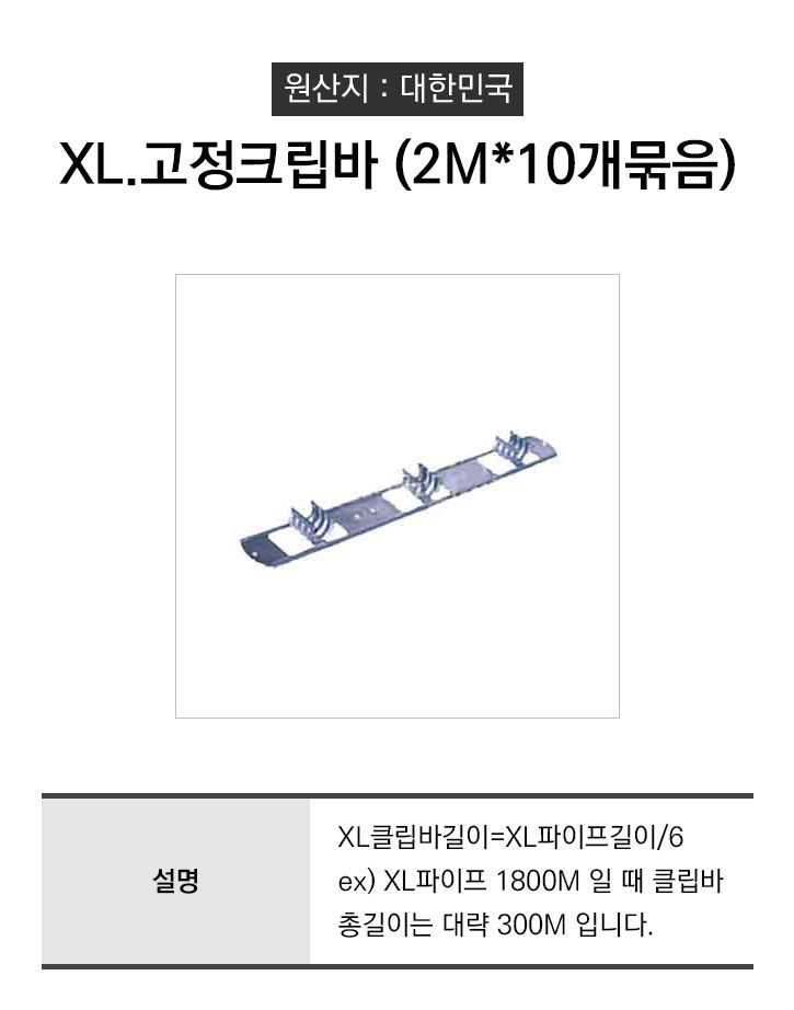 XL클립바길이=XL파이프길이/6 (XL파이프1800M일때 클립바총길이는 대략300M)